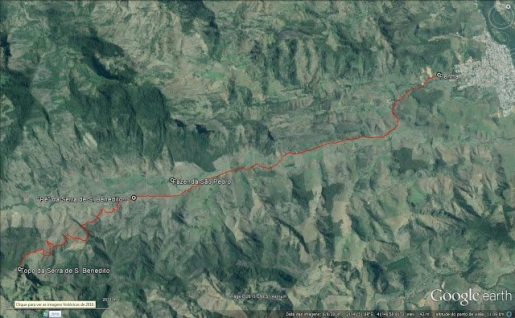 Os participantes percorrerão aproximadamente 30 Km, incluindo ida e volta e para melhor compreensão da área geográfica (vide mapa e altimetria abaixo)